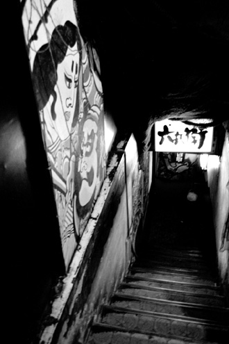 外国のホテルでは、こういうとき緊急用のインターホンがあったり、通用口があったりした。締め出されたことあるので、知ってる。そんなようなものもない。1階に階段を下りて(フロントは2階なのだ)、出入り口がないかどうか、暗闇の中をうろうろする。ボルタンスキーの教室もどき。これもアートか...結局それらしきものは見つか