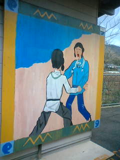 出雲の神話エピソードが描かれているのですが、さて描いたのは地元の小学生あたりなのか?