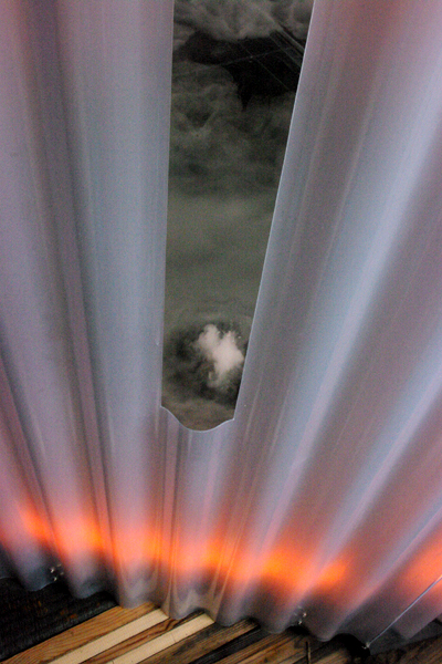 これも空家。何故か一つ前の家ほど怖くない。空き家になって間もない、っていうのあるかもしれない。まだ人の気配が生きているとか。村の人から集めた工具や本なんかが糸の向こう側にある。素材の温かみで説明してしまうのはきっと違うと思うけど、一つ前の家のような空々しさがない。